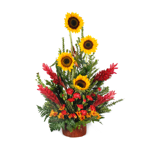 Girasoles primaverales con claveles