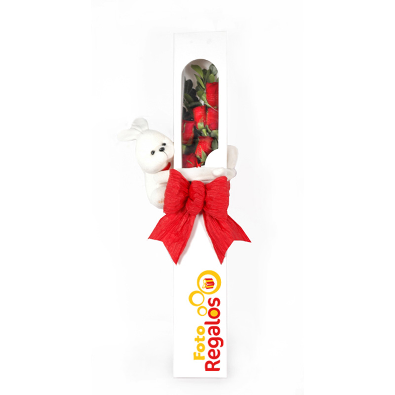 Caja de 6 rosas con conejito